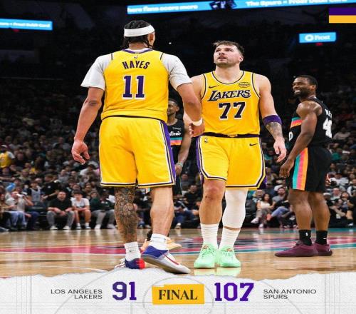 NBA常规赛继续进行,洛杉矶湖人队(23胜12负)结束连胜。虽然东契奇送出38分三双,但约翰逊替补得到27分,文班亚马得到16分和14个篮板,他们率队下半场重新拉开领跑,圣安东尼奥马刺队(26胜11负)在主场以107-91战胜湖人队。马刺队结束2连败,湖人队的3连胜被终结。